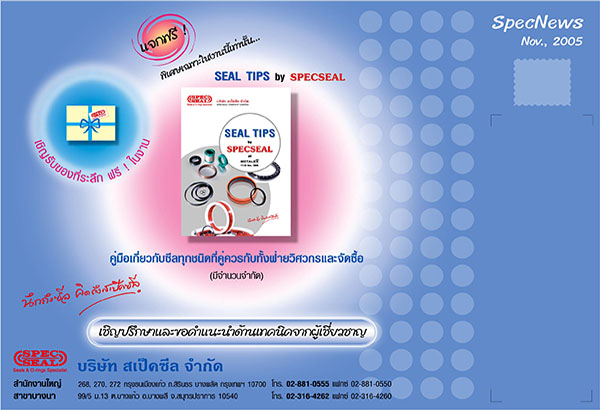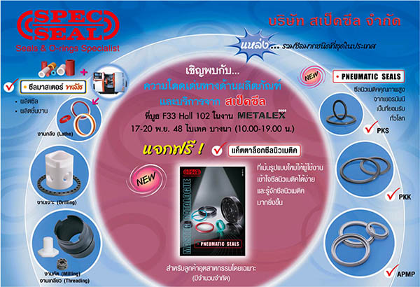 ในงานเมทัลเล็กซ์ 2005 สเป็คซีล นำเสนอความโดดเด่น ทางด้านผลิตภัณฑ์และการบริการ โดยในงานแจกฟรี ! แคตตาล็อกนิวเมติคที่เน้นรูปแบบให้ผู้ใช้งานเข้าใจได้ง่ายยิ่งขึ้น 17-20 พฤศจิกายน 2548