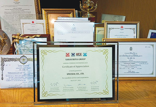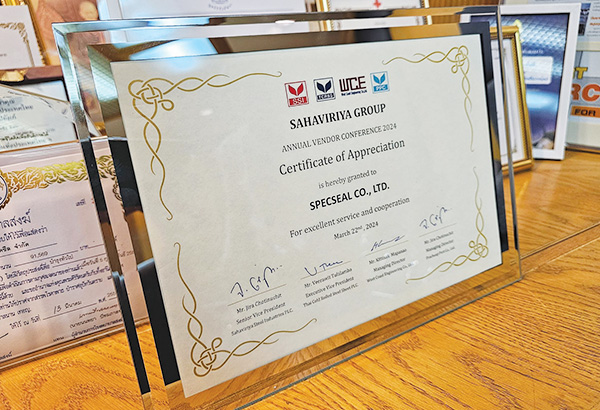 สเป็คซีลมีความยินดีที่จะแจ้งว่า บริษัท สเป็คซีล จำกัด ได้รับใบประกาศนียบัตรอันเป็นเกียรติอย่างสูงสุดจาก บริษัท สหวิริยาสตีลอินดัสตรี จำกัด (มหาชน) ที่แสดงถึงการให้บริการอันเป็นเลิศของบริษัทฯ ทั้งด้านสินค้าและบริการที่มีให้แก่ลูกค้าของเราตลอดมา สเป็คซีลขอน้อมรับรางวัลอันทรงคุณค่านี้เพื่อเป็นแรงผลักดันให้เรามุ่งมั่นพัฒนาสินค้าและการบริการที่ดีเยี่ยมของเราต่อไป