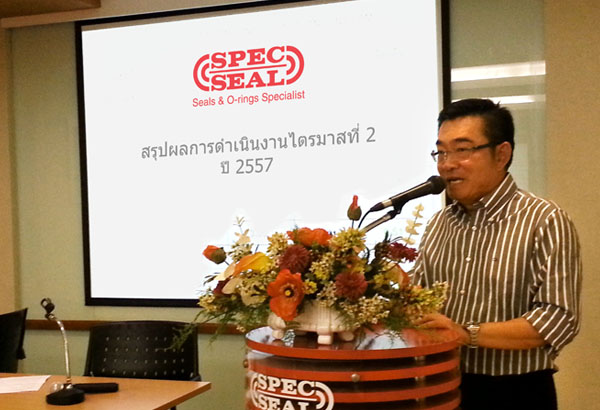 เมื่อวันที่ 23 กรกฎาคม 2557 ที่ผ่านมา สเป็คซีลได้จัดประชุมสรุปผลการดําเนินงาน Midyear Sales Meeting 2014 โดยเริ่มต้นในช่วงเช้าด้วยการสัมมนาเพิ่มเติมความรู้และเทคนิคการขายต่างๆ ให้กับพนักงานขาย รวมทั้งเปิดโอกาสใหับุคลากรสามารถเสนอความคิดเห็นแลกเปลี่ยนประสบการณ์ในการทำงานระหว่างทั้ง 4 สำนักงาน ของสเป็คซีล พร้อมกันนั้น ได้ชี้แจงสรุปผลการทำงานครึ่งปีที่ผ่านมา รวมถึงประชุมหารือเรื่องปัญหาอุปสรรค และแนวทางการแก้ไข รวมทั้งชี้แจงแผนงานที่จะทำในครึ่งปีหลังนี้ เพื่อให้สอดคล้องกับเศรษฐกิจไทยที่มีแนวโน้มจะฟื้นตัวดีในช่วงครึ่งปีหลังของปีนี้เช่นกัน