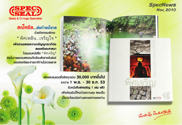 เพียงสะสมยอดซื้อซีลทุกชนิดเป็นจำนวนเงิน 30,000 บาทขึ้นไป ระหว่าง 1 พ.ย.-30 ธ.ค. 53 รับหนังสือพิศเจริญ 1 เล่ม ฟรี เพื่อต้อนรับปีใหม่ด้วยความสุขสงบเย็น เป็นประโยชน์ต่อท่านและองค์กรของท่าน