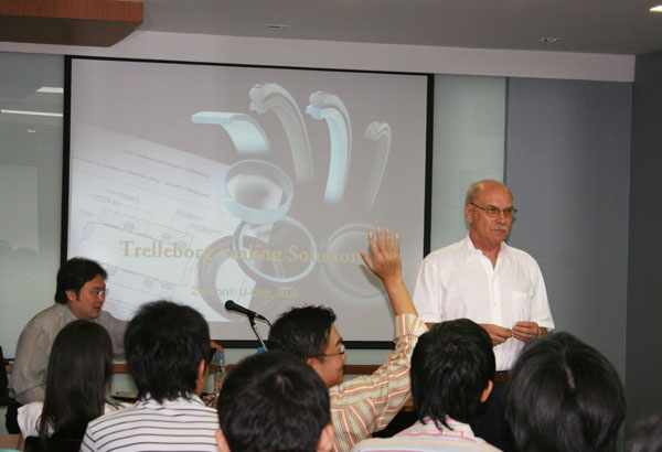 เมื่อวันที่ 15 กันยายน 2550 บริษัท สเป็คซีล จำกัด ได้จัดสัมมนา เพิ่มความรู้เรื่องซีลให้กับพนักงานขายทั้ง 4 สำนักงาน ณ สำนักงานใหญ่ ถ. สิรินธร ในหัวข้อ “New Seals Designs” โดยได้รับเกียรติจาก MR. ROLF POETHIG และ MR. ANTHONY GOH จาก Busak + Shamban ประเทศเยอรมัน (ซึ่งปัจจุบันเปลี่ยนชื่อเป็น TRELLEBORG SEALING SOLUTIONS) เป็นวิทยากรถ่ายทอดความรู้ในครั้งนี้