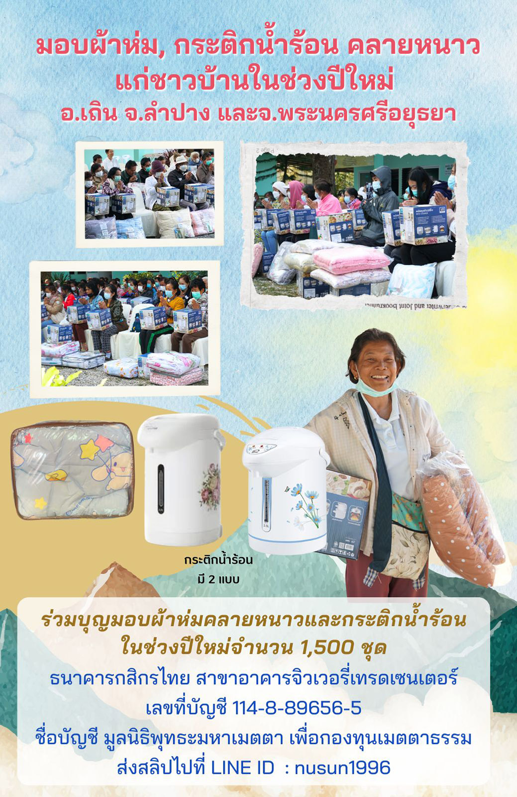 สเป็คซีล ร่วมกับ มูลนิธิพุทธะมหาเมตตา และมูลนิธิเมตตาธรรม หัวใจโพธิสัตว์ กับ โครงการแบ่งปันความอบอุ่นต้อนรับปีใหม่ 2569 มอบผ้าห่มและกระติกน้ำร้อนจำนวน 1,500 ชุด เพื่อช่วยคลายความหนาวและสร้างกำลังใจแก่ชาวบ้าน อ.เถิน จ.ลำปาง และ อ.เชียงรากน้อย จ.อยุธยา