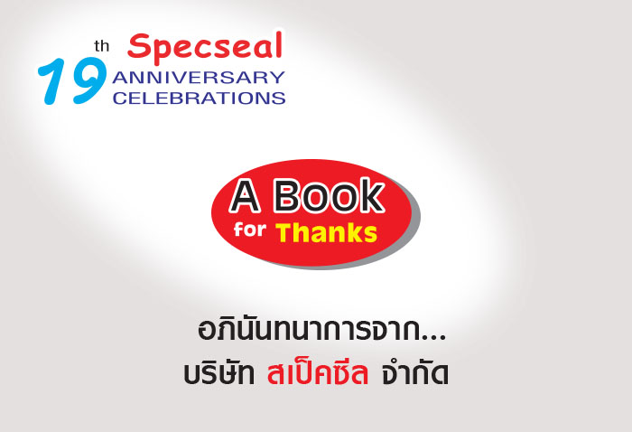 จากที่สเป็คซีลได้จัดกิจกรรม “A Book for Thanks” ที่บริษัทฯ ได้ดำเนินการมาครบ 19 ปี ในปีนี้ ระหว่าง 1 เม.ย.-31 พ.ค.51 ที่ผ่านมา โครงการนี้ดำเนินมาครบกำหนดแล้ว