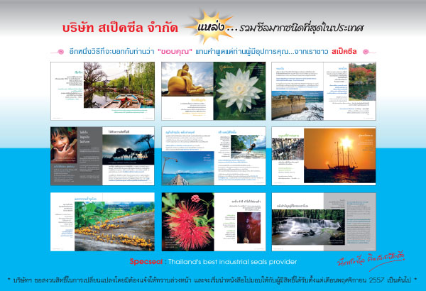 เนื่องในวาระย่างเข้าสู่ปีที่ 26 สเป็คซีล ขอมอบธรรมะอันล้ำค่าให้กับผู้มีอุปการคุณทุกองค์กรที่มียอดการสั่งซื้อสินค้าในปี ’57 ตั้งแต่ 26,000 บาทขึ้นไป ด้วยหนังสือธรรมะ “ของขวัญจากพระพุทธเจ้า” โดย…ธารธรรม บันทึกธรรมที่มีความหนา 130 หน้า รวบรวมพระธรรมคำสอนอันทรงคุณค่า ด้วยเนื้อหาเหมาะกับยุคสมัย พร้อมรูปภาพ 4 สีสวยงามสื่อตรงเนื้อหาข้อธรรมมากถึง 97 ภาพ เพื่อให้พระธรรมเป็นประทีปนำทาง