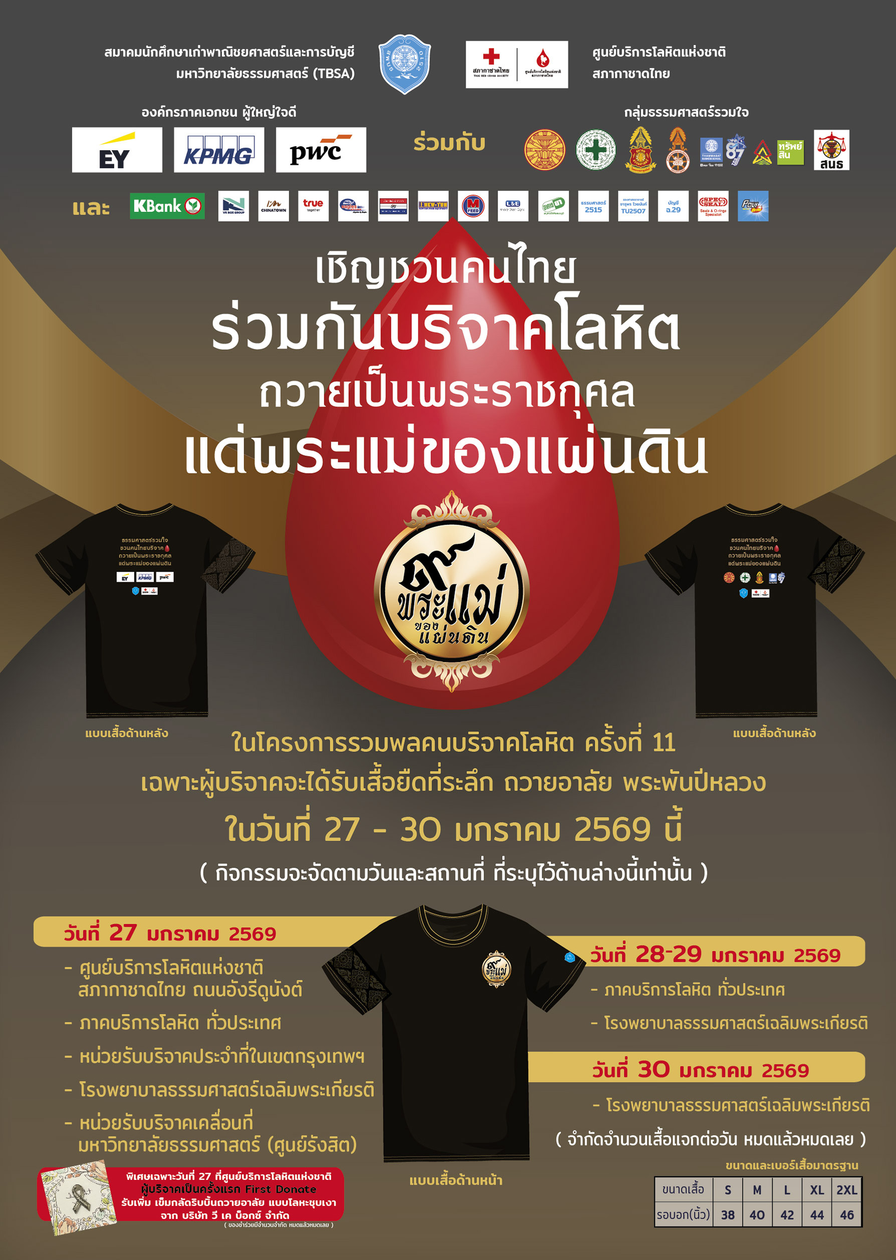 สเป็คซีล อิ่มใจได้บุญ ขอเชิญร่วมกันบริจาคโลหิตกับกิจกรรม “รวมพลคนบริจาคโลหิต ครั้งที่ 11” ถวายความอาลัยแด่ สมเด็จพระนางเจ้าสิริกิติ์ พระบรมราชินีนาถ พระบรมราชชนนีพันปีหลวง พร้อมรับเสื้อ “๙ พระแม่ของแผ่นดิน” ในวันที่ 27 – 30 มกราคม 2569 นี้